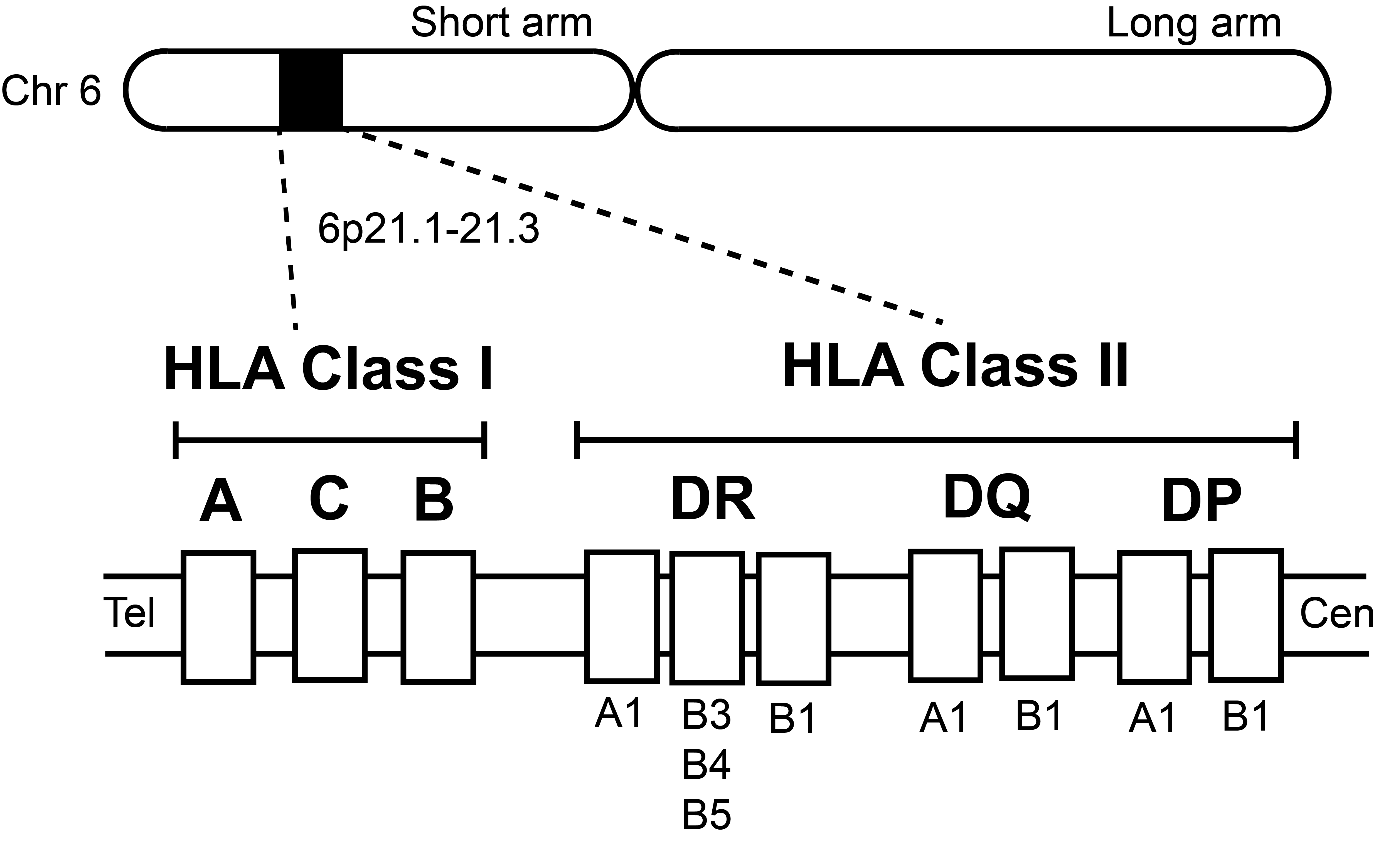 HLA is located on chromosome 6 in the Major Histocompatibility Complex (MHC).