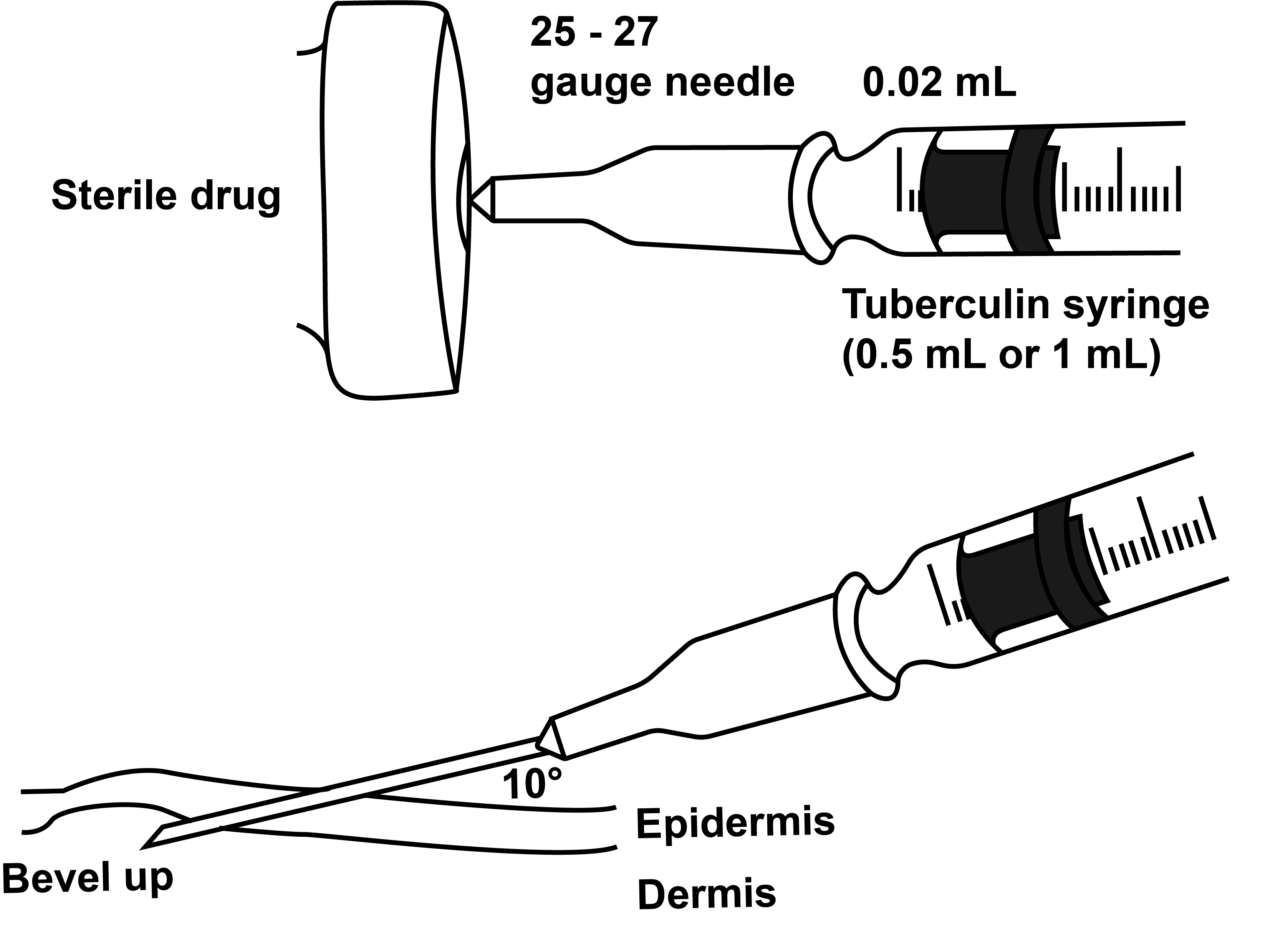 Concentrations typically employed for drug skin testing are 1:10, 1:100, and full strength.
